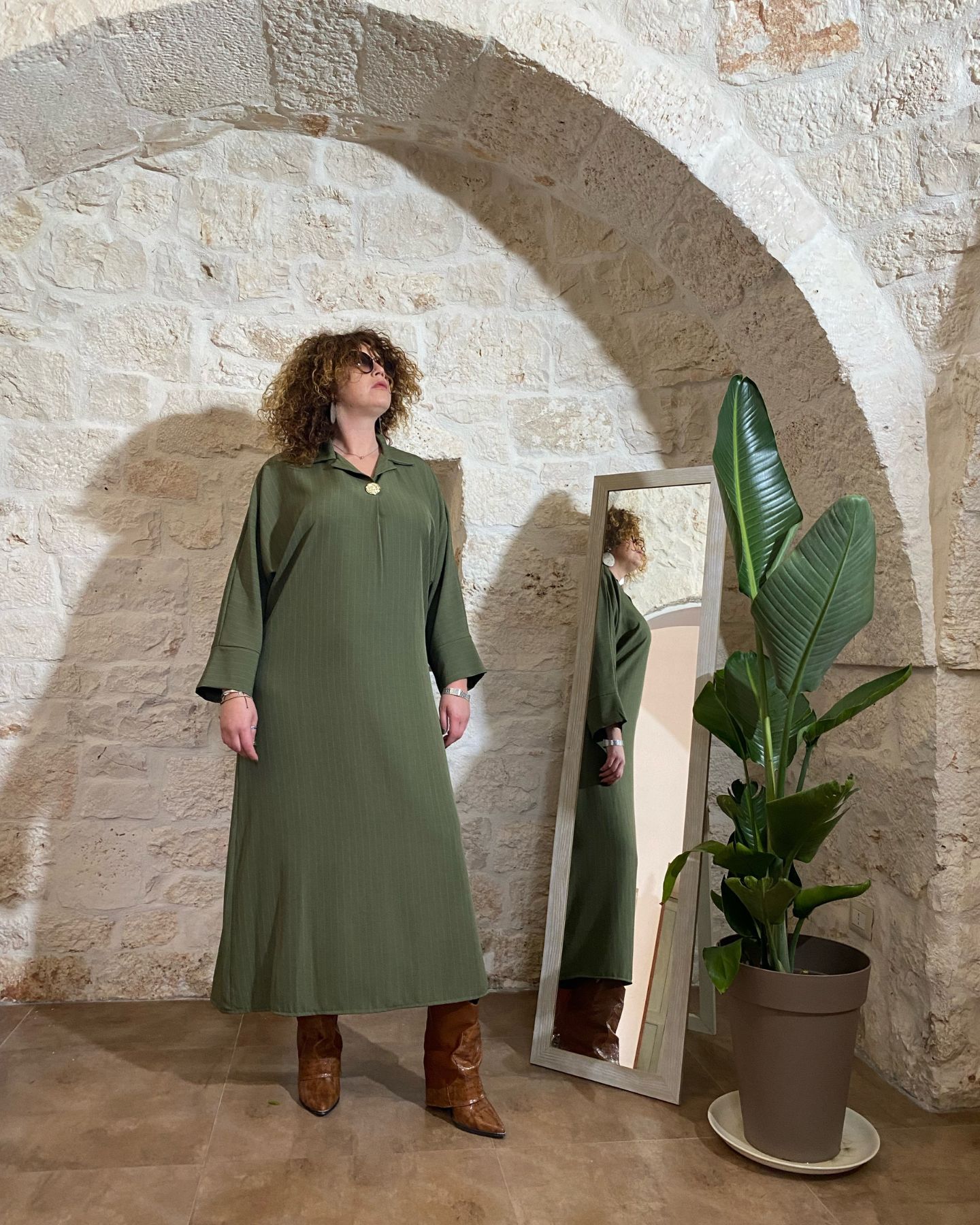 Realizzato con tessuti di alta qualità, questo abito unisce morbidezza e vestibilità perfetta. Il taglio studiato per le forme curvy valorizza la silhouette con eleganza, senza costrizioni. Le maniche lunghe donano un tocco raffinato, mentre il colore verde — simbolo di equilibrio e rinascita — aggiunge una nota di freschezza e personalità.