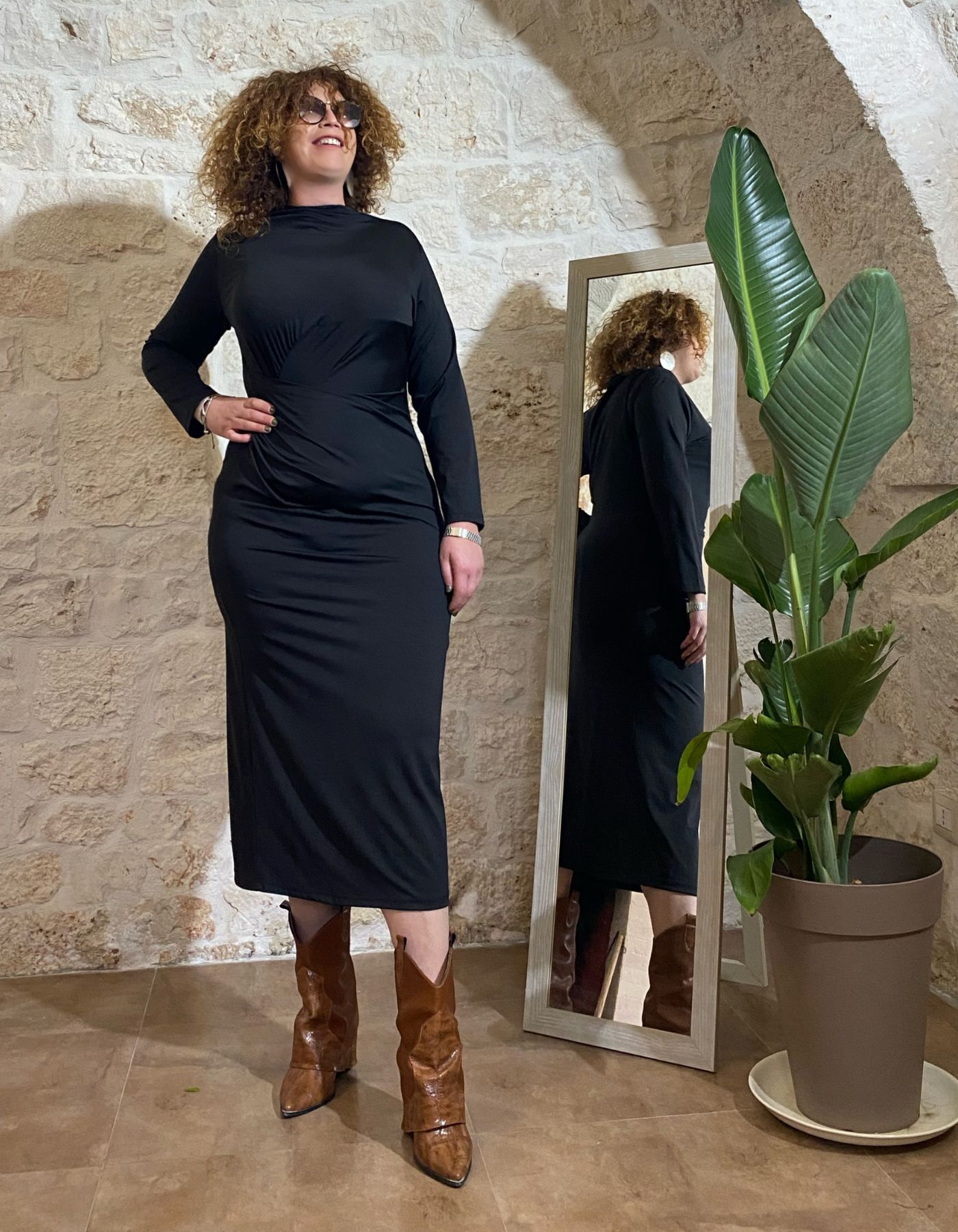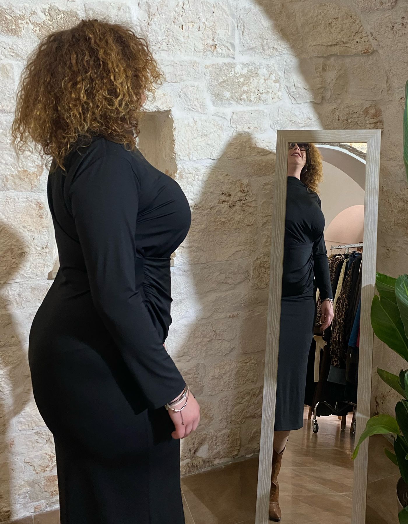 Questo tubino nero è l’ideale per chi desidera un capo pratico, elegante e confortevole, capace di accompagnarti durante tutto il giorno e di essere sempre chic in ogni occasione. La sua palette totale dedicata al nero classico, infatti, lo rende facilmente combinabile con altri capi e accessori, rendendolo un vero e proprio jolly nel guardaroba di una donna curvy.