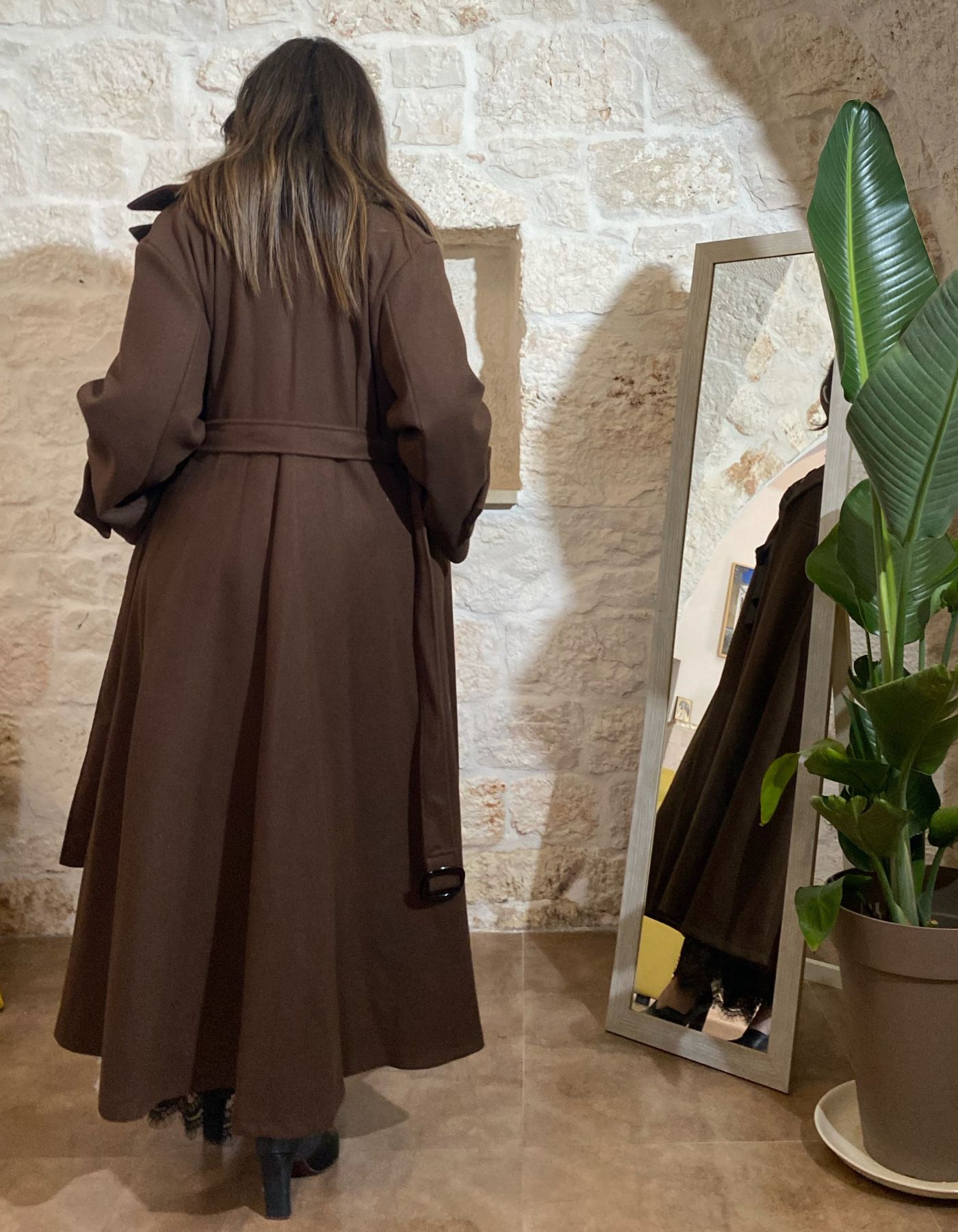 Lo stile del CAPPOTTO LADY DIANA MARRONE è un perfetto equilibrio tra un’impronta reale e una linea over, che lo rende ideale per chi ama un look audace, fluido e di carattere. La lunghezza fino alla caviglia aggiunge un tocco di eleganza che valorizza ogni outfit, dal più formale al più casual.