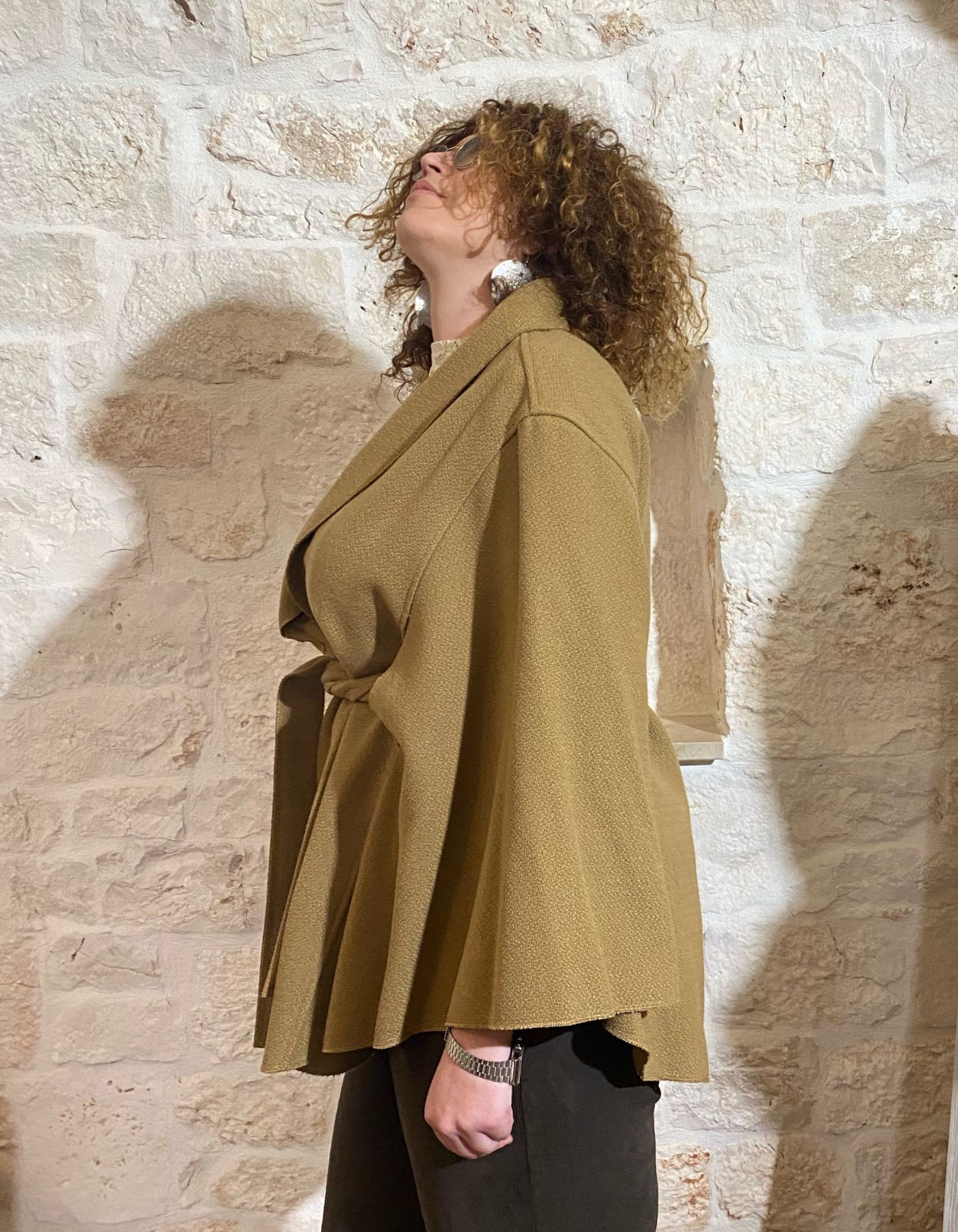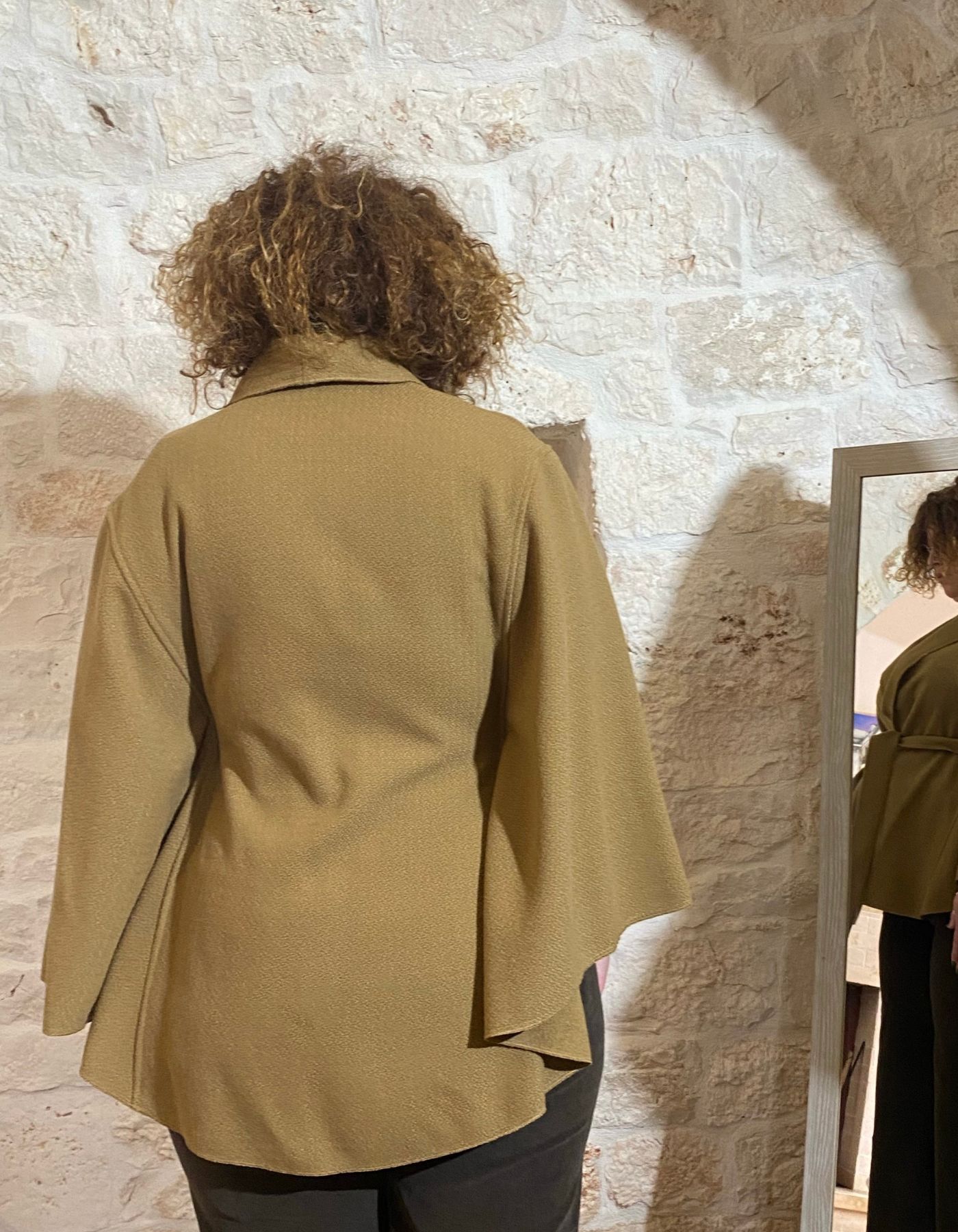 Lo stile della MANTELLA DIVINA BEIJE è decisamente raffinato ed elegante, perfetto per occasioni formali, eventi di tendenza o anche per un everyday chic. La sua linea over la rende comoda e adatta alle fisicità curvy, offrendo spazio e libertà senza rinunciare alla classe.