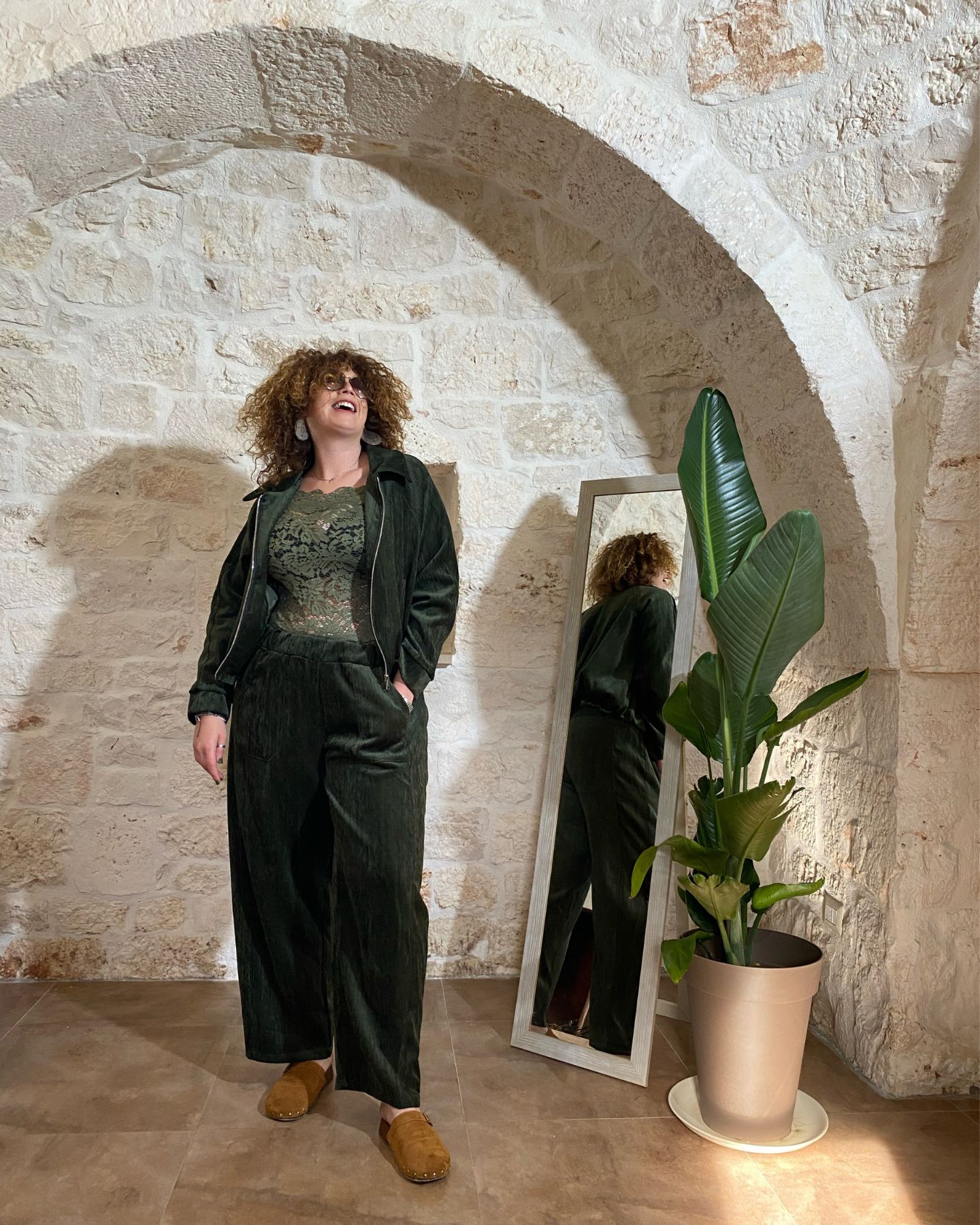 Indossare la maglia in pizzo verde curvy significa sentirsi eleganti e sicure in ogni occasione. Ogni dettaglio è pensato per esaltare la femminilità con stile e raffinatezza.